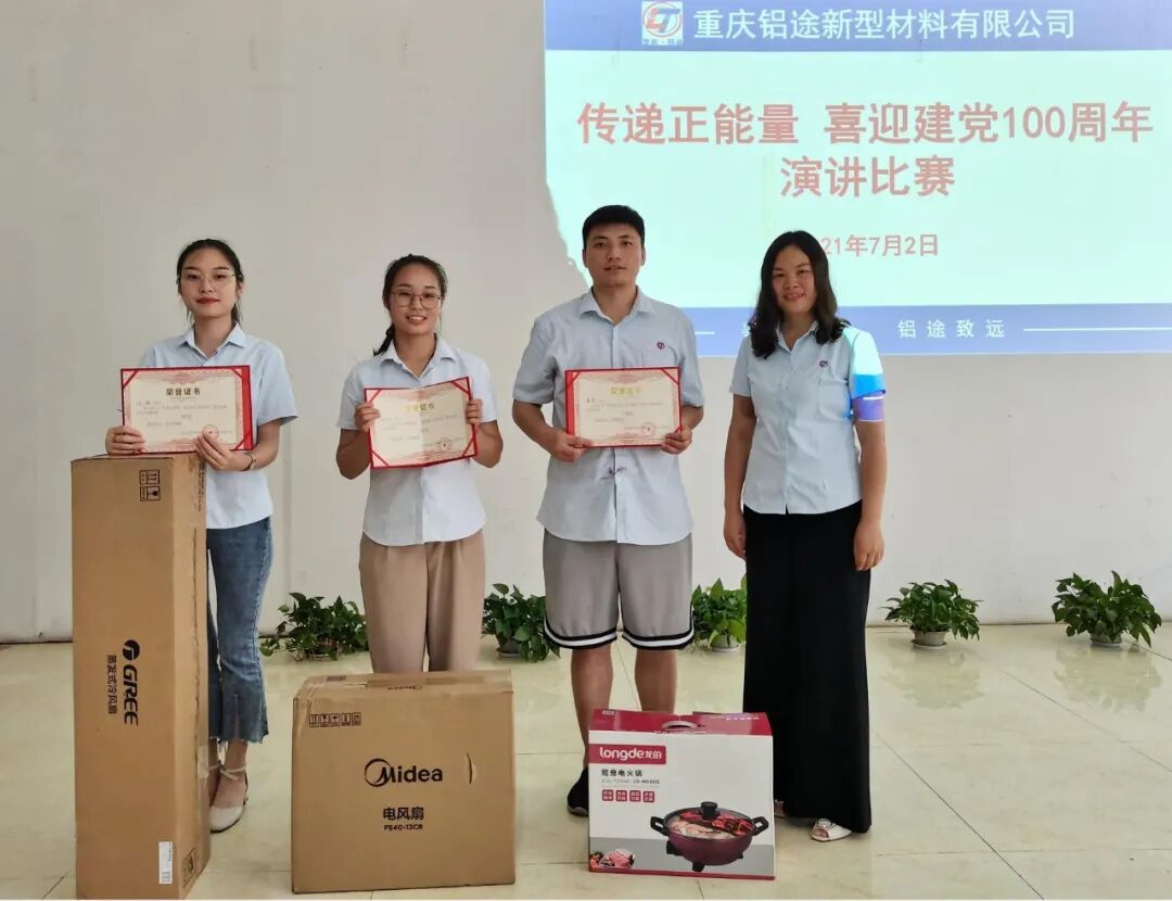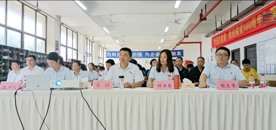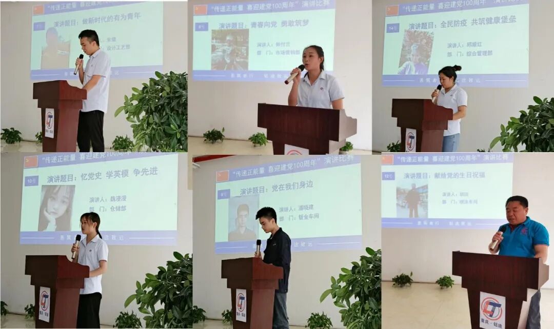 2021年7月2日下午14:30公司在食堂隆重举行“传递正能量 喜迎建党100周年”演讲比赛。演讲比赛由市场营销部部长宋玲主持,总经理钟泽秀、总经理助理程志荣、总经理助理易强、各部门主管以及公司全体员工参加了本次活动。