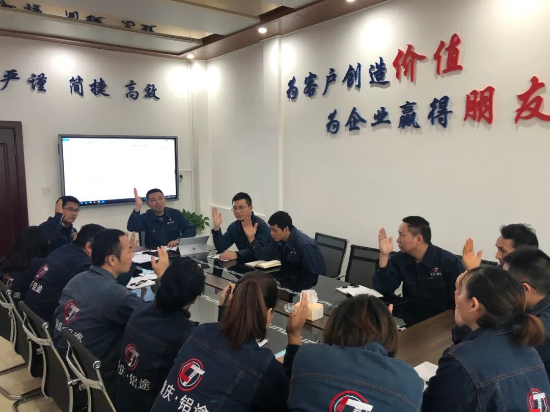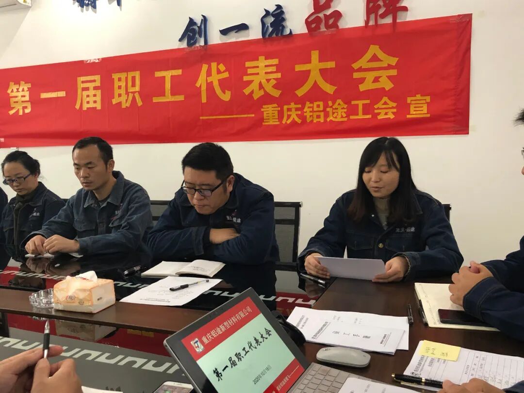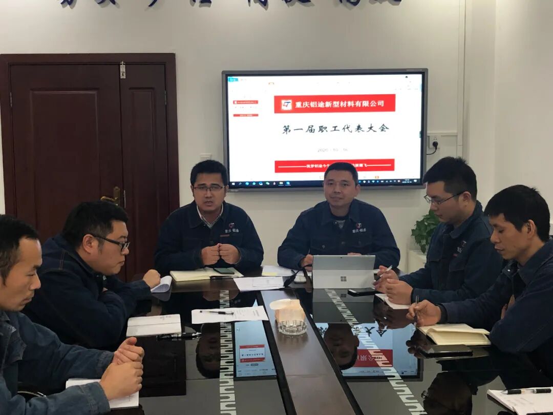 2020年10月16日下午14:00,重庆铝途第一届职工代表大会在展厅会议室隆重召开。会议由工会主席易强主持,11名职工代表,副总经理刘世洪、生产事业部部长程志荣及各部门主管参加了本次会议。