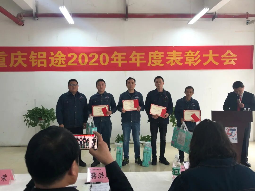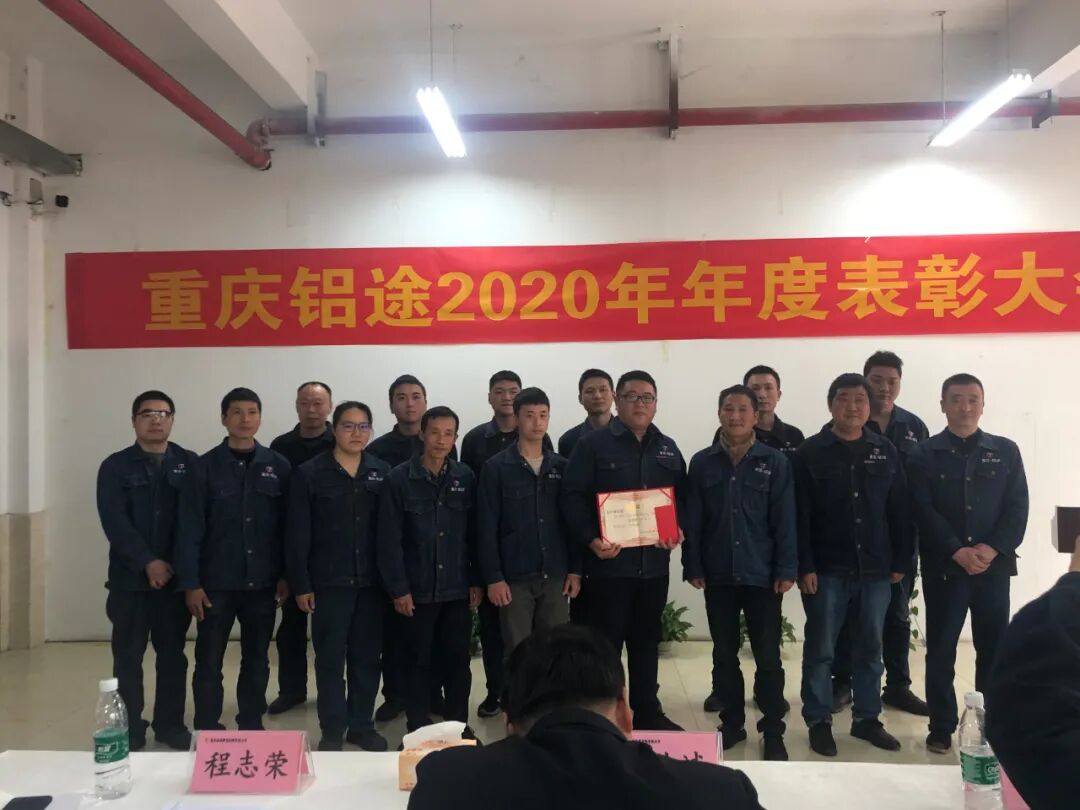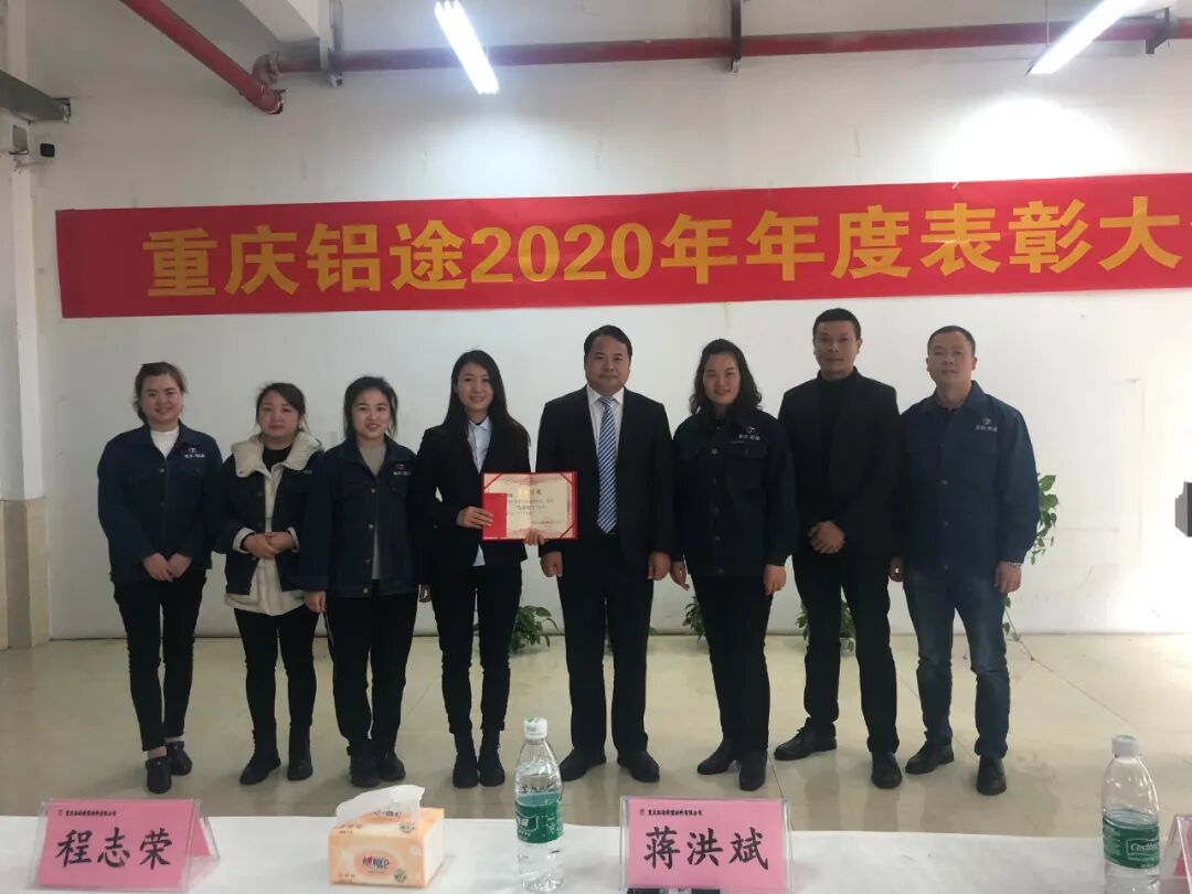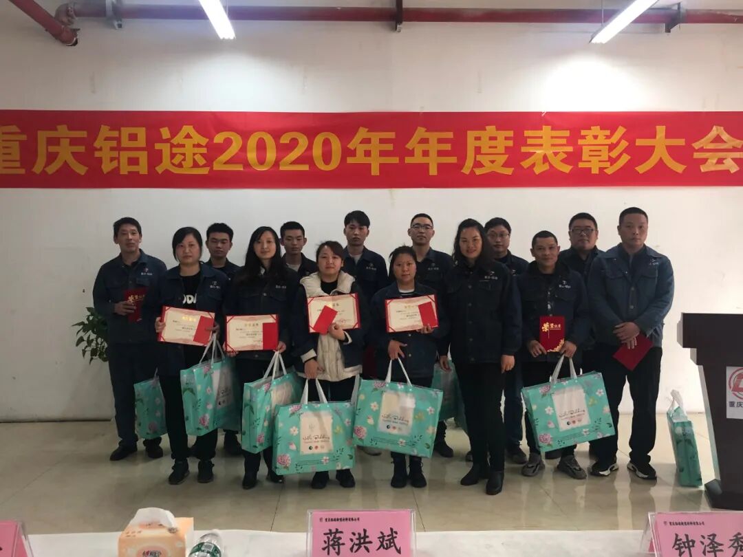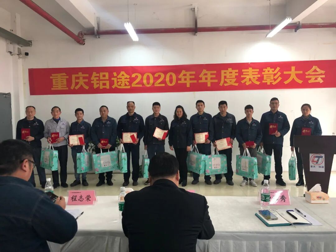 2021年2月26日下午14:00,重庆铝途2020年年度表彰大会在公司食堂隆重召开。会议由综合管理部部长易强主持,董事长蒋洪斌、总经理钟泽秀及全体员工参加了本次大会。