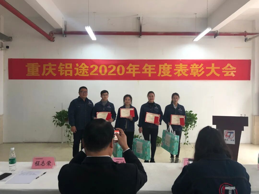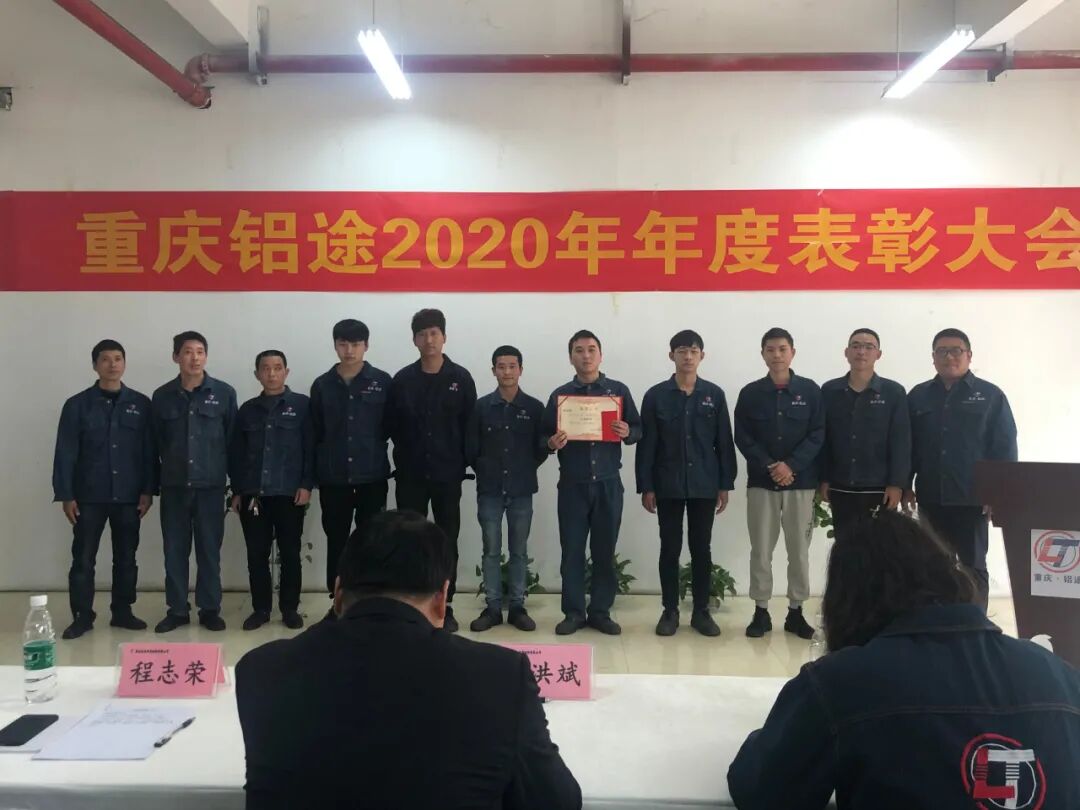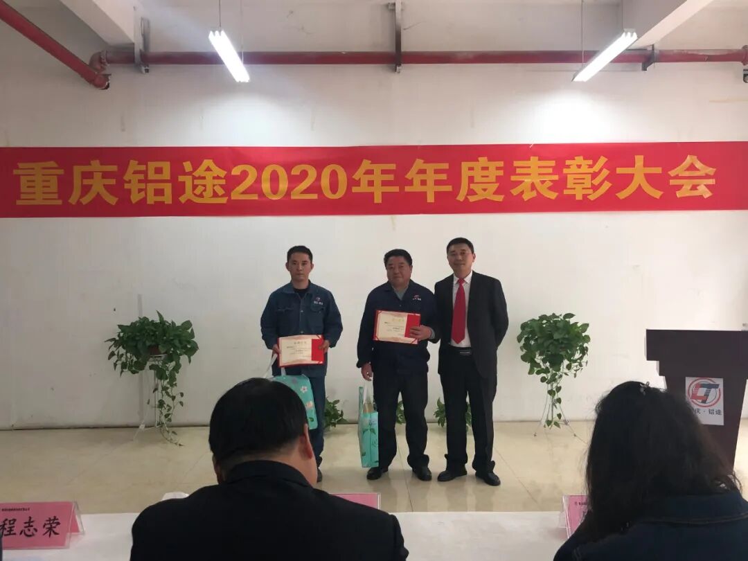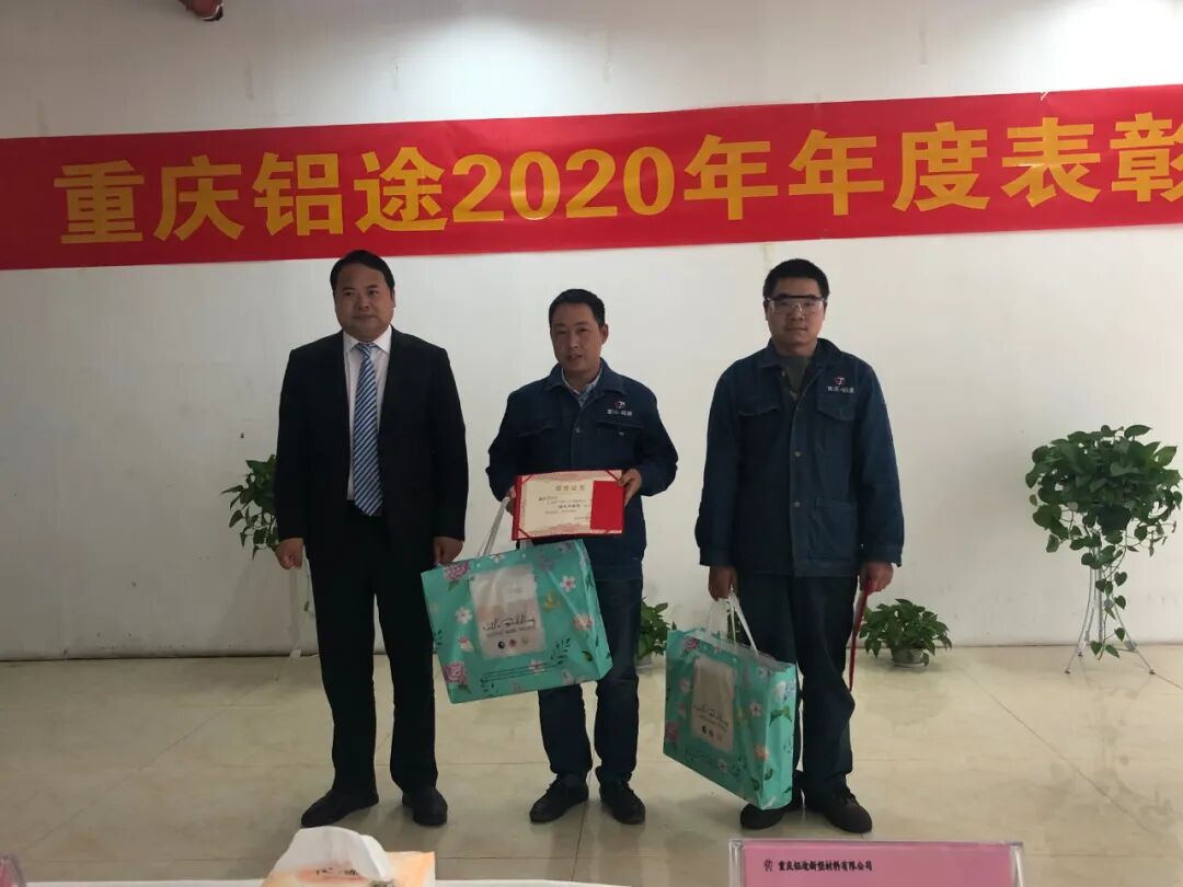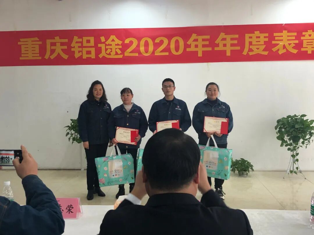 2021年2月26日下午14:00,重庆铝途2020年年度表彰大会在公司食堂隆重召开。会议由综合管理部部长易强主持,董事长蒋洪斌、总经理钟泽秀及全体员工参加了本次大会。