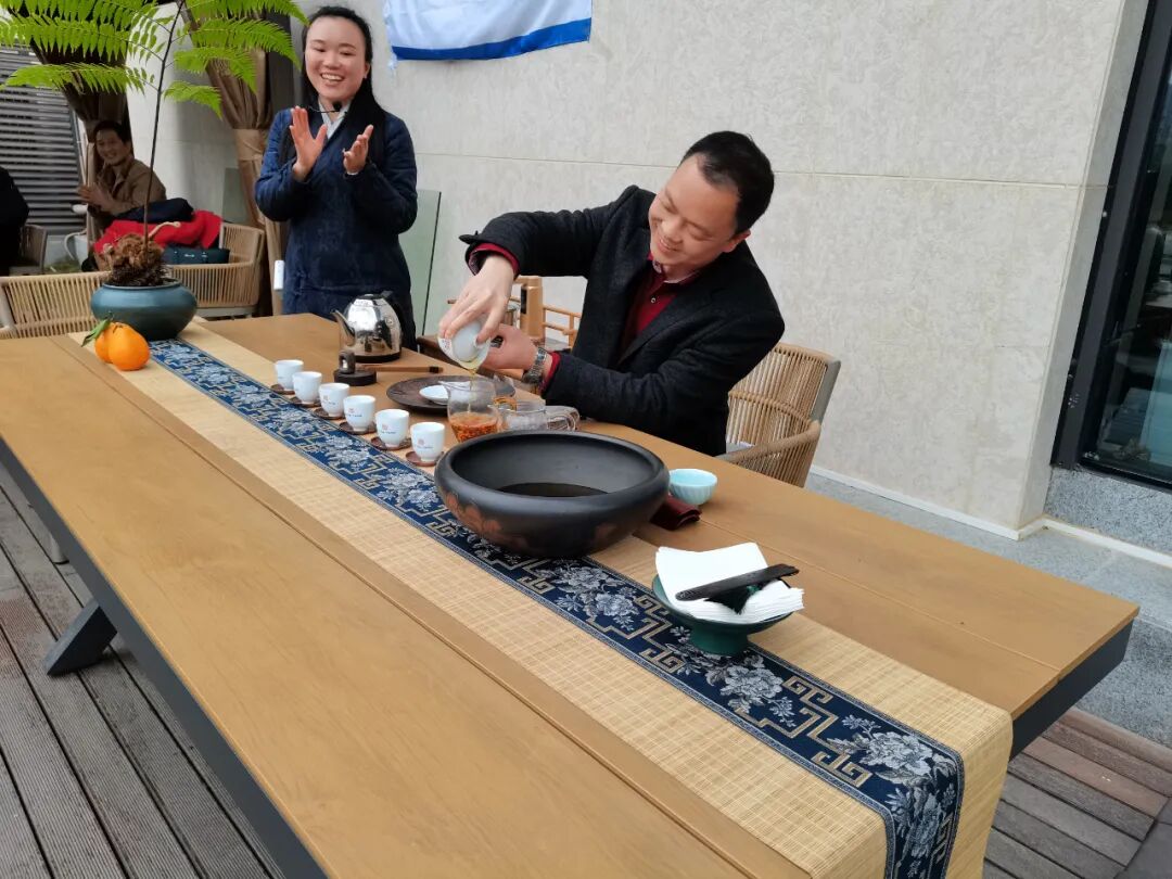 活动当天下午,感谢壹和号古树茶创始人张雪芹总经理为我司提供了场地,还安排了国家高级茶艺师对全体参会人员进行了茶艺培训。茶艺师对中国的传统礼仪礼节、茶的历史起源、如何选茶和保存、泡茶的实操和如何品茶等进行了全方位的讲解。通过以茶知艺,以艺知礼,以礼悟道的方式,让大家感受到了中国的文化博大精深。